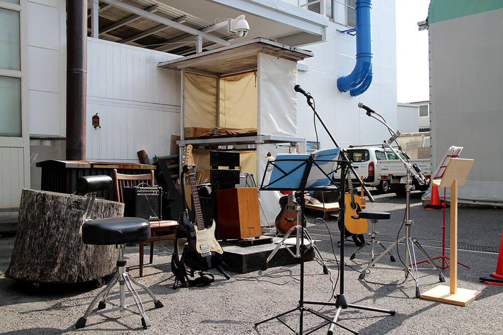 社内の音楽好きが楽器を持ち寄り、お昼休みや休日に練習している「音楽クラブ」。次第にメンバーも曲数も増え、ミニコンサートへと進化していきました。今年のお花見は工場の敷地内で、素敵な音楽を楽しみながらの開催となりました。